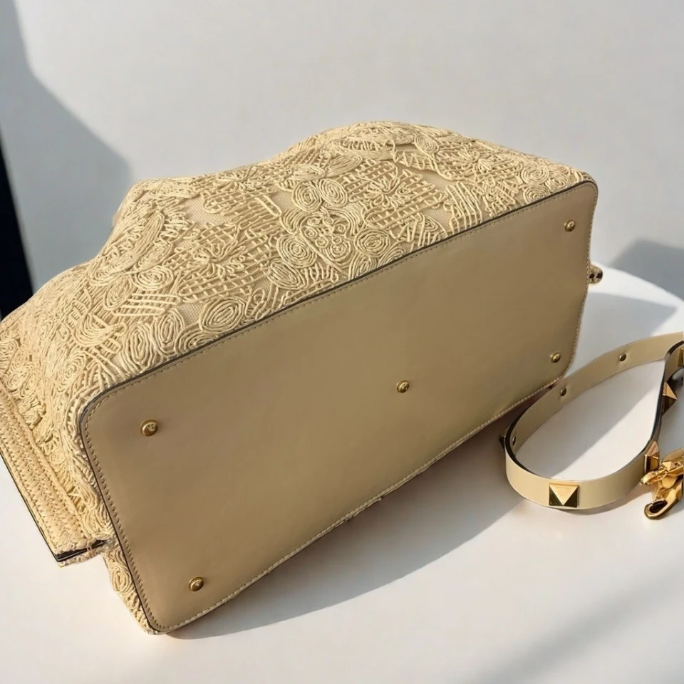 2026 New Fashion Genuine Leather Women's Raffia Embroidered Handbag, Casual Vers