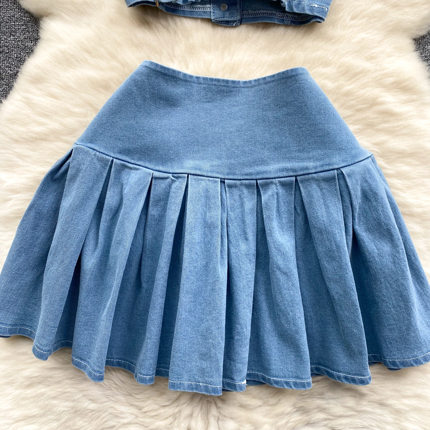Chic Retro Hong Kong Style Spicy Girl Denim Skirt And Tank Top Set Versatile Tw