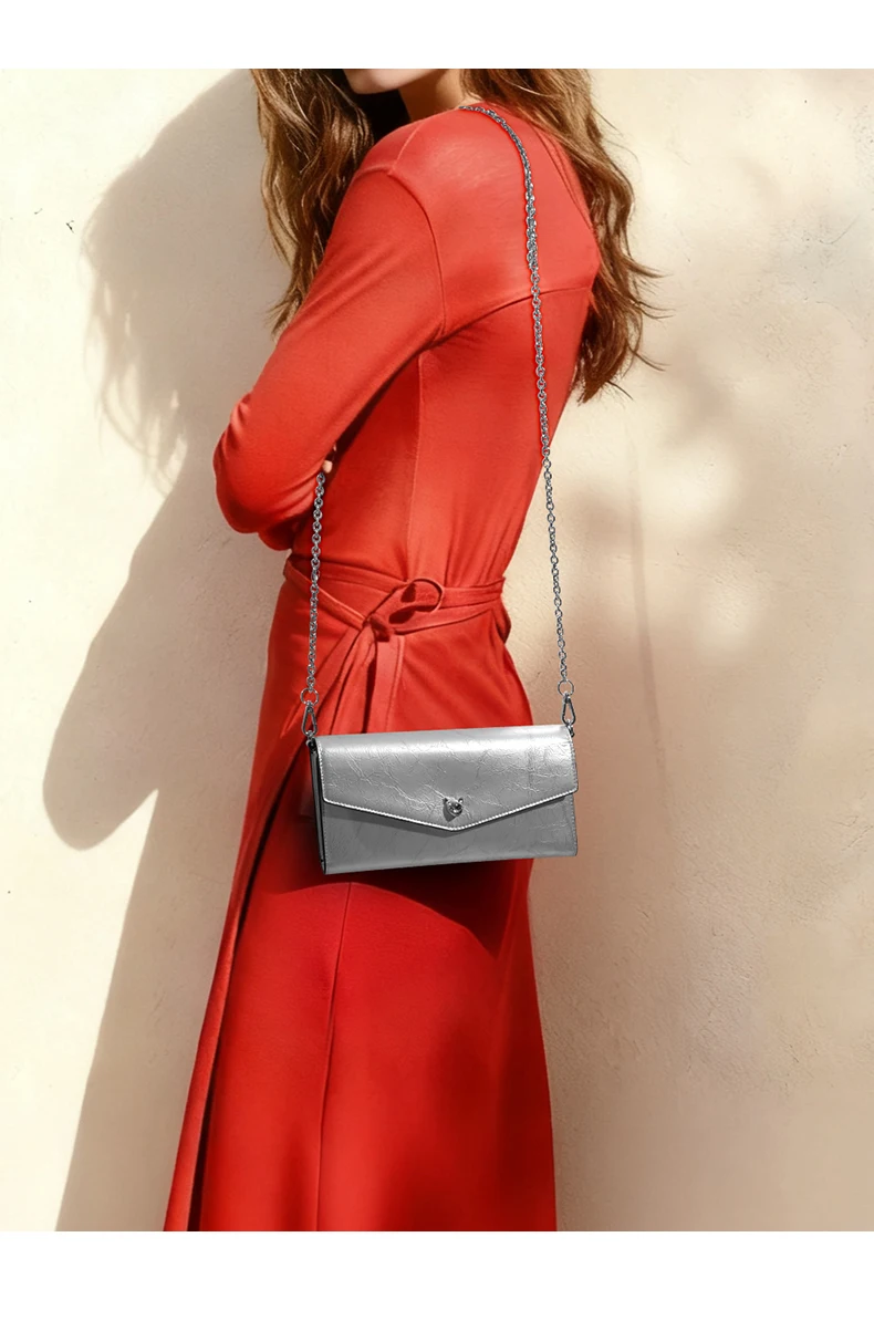 Fashionable Chain Handle Long Wallet with Multiple Compartments Genuine Leather