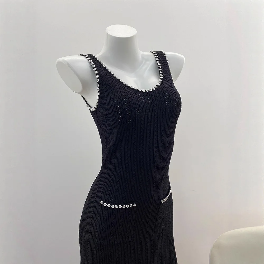 High-quality new heavy-duty beading French-style sequin backless knitted long dr