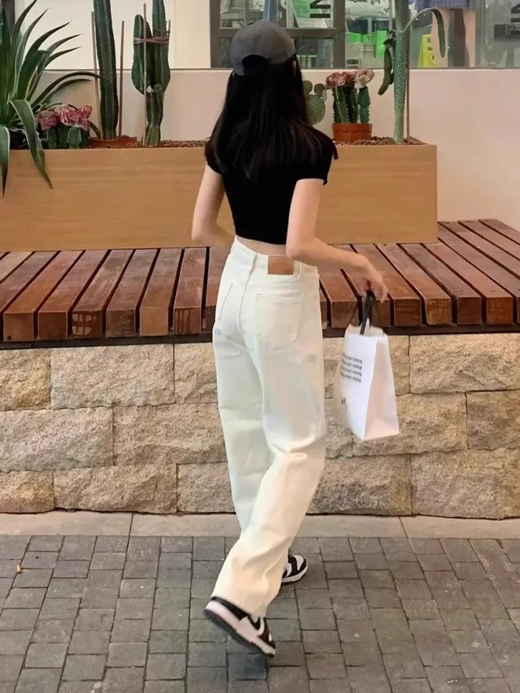 High Waist Straight Leg Wide Leg Jeans Women's Slimming Long Pants Spring Summer