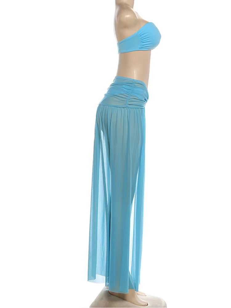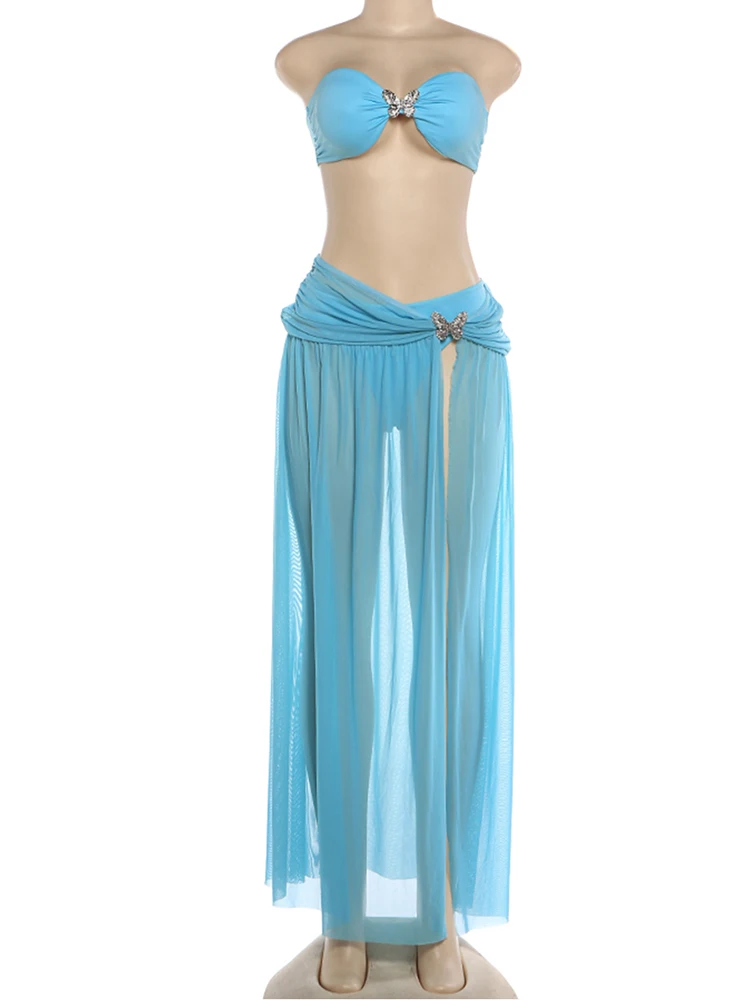 Kliou Butterfly Decoration 3 Piece Set Women Sexy Strapless Tops+Briefs+Mesh Hig