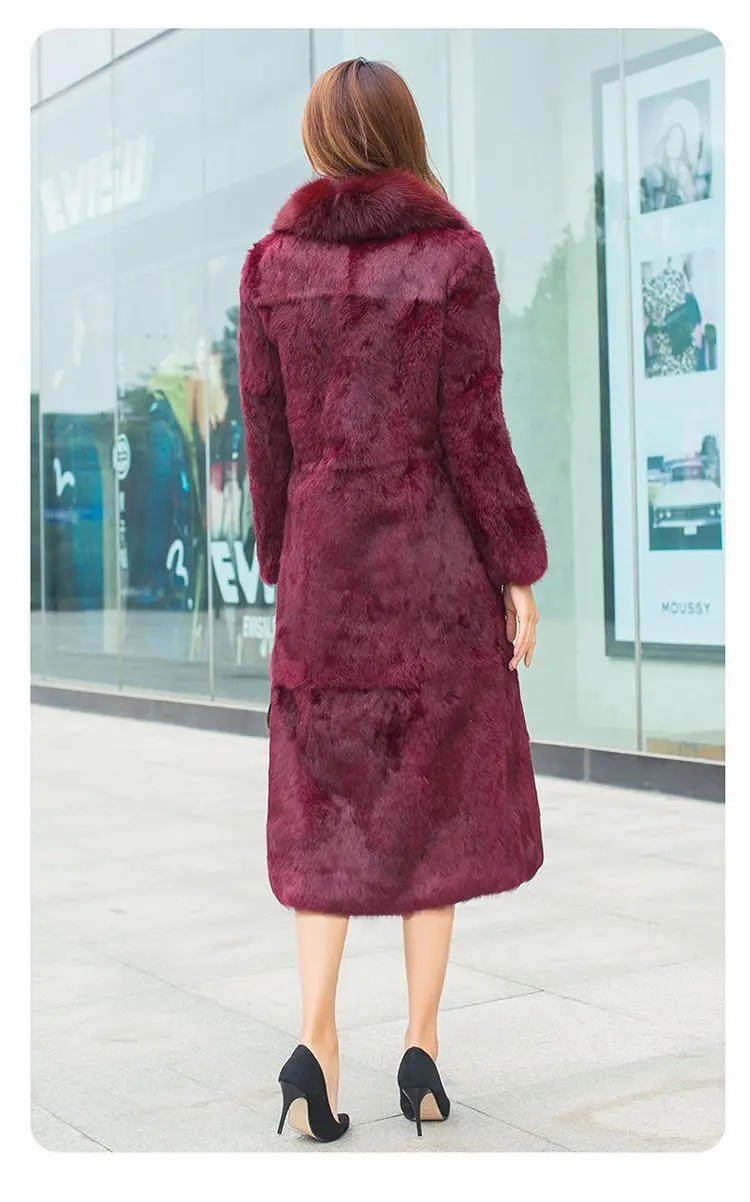Real Rex Rabbit Fur Coat Women Autumn Winter Long Jacket Thick Warm New Fashion