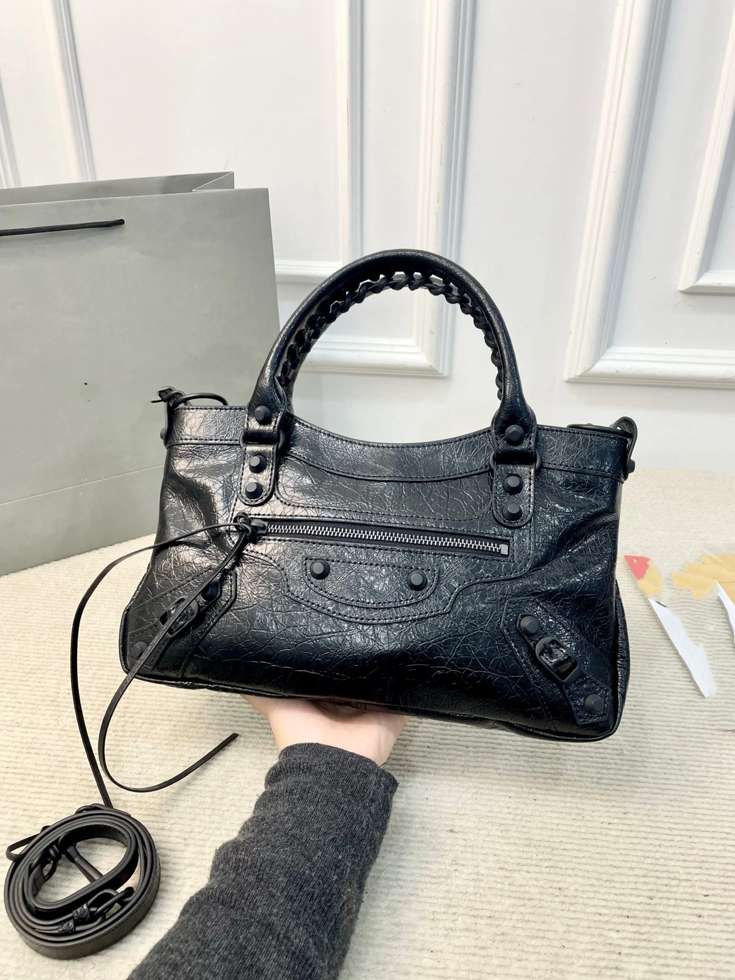 Retro Rivet Biker Bag, Chic, High Fashion, Large Capacity, Shoulder, Handheld,