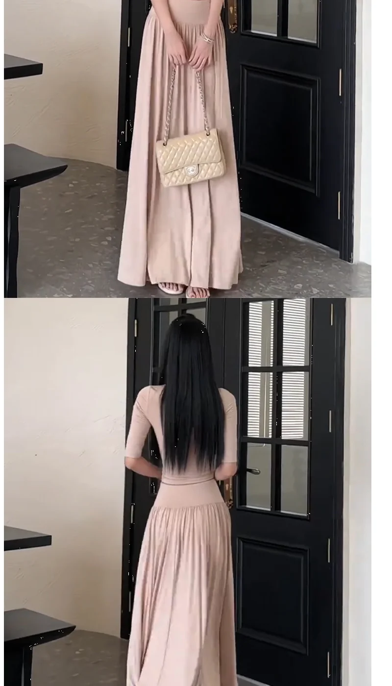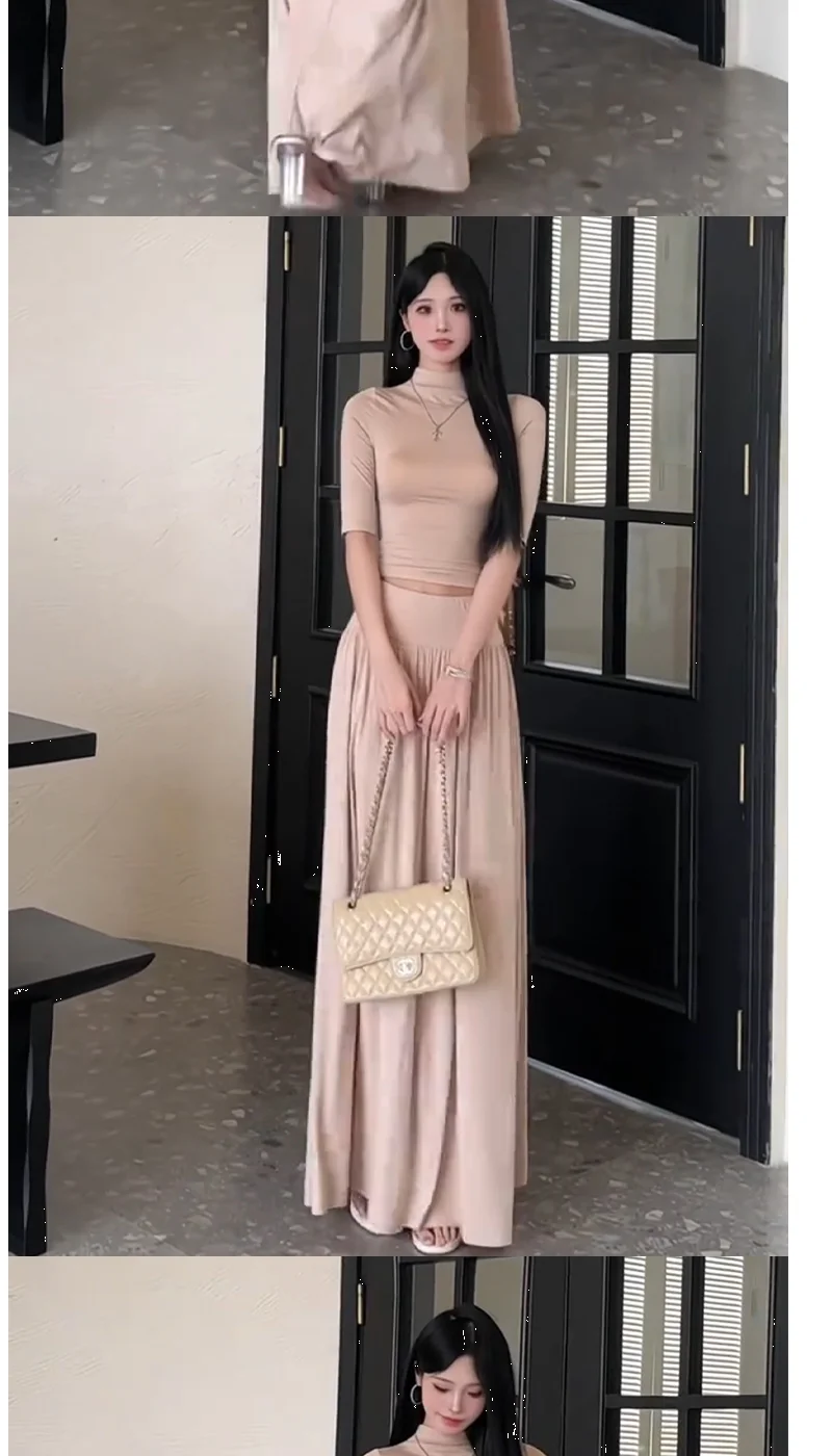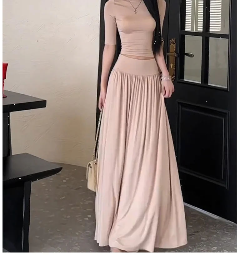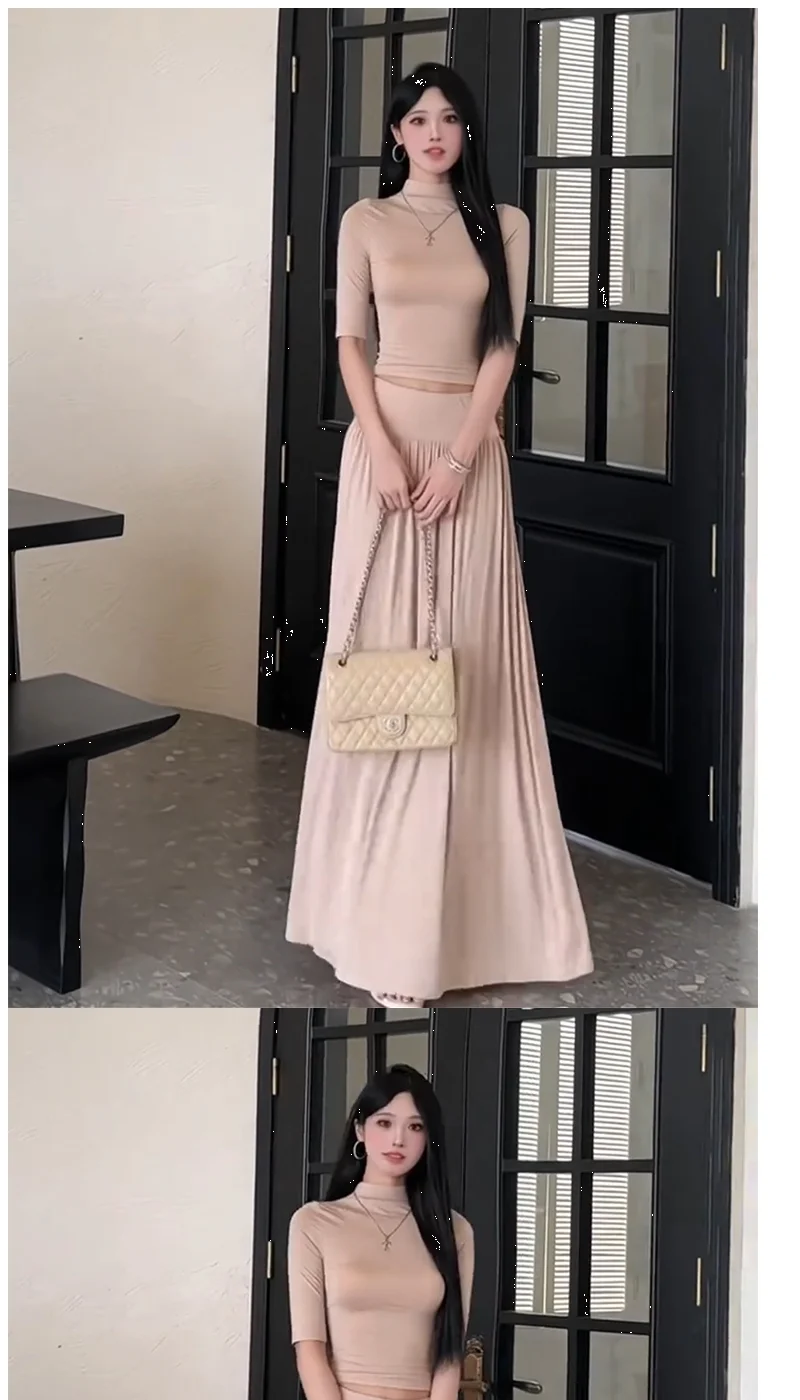 Summer Wind Mid-Sleeve Slim Fit T-Shirt High Waist Pleated A-Line Skirt Two-Pie