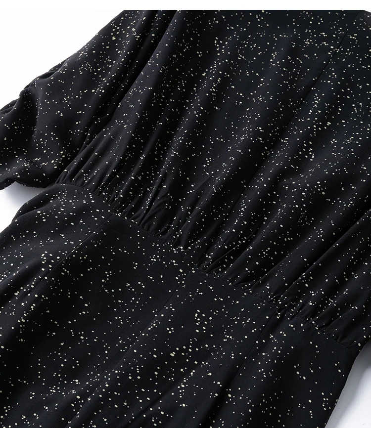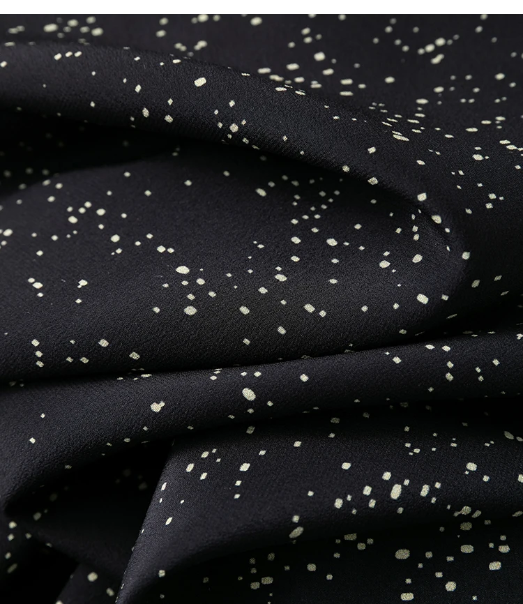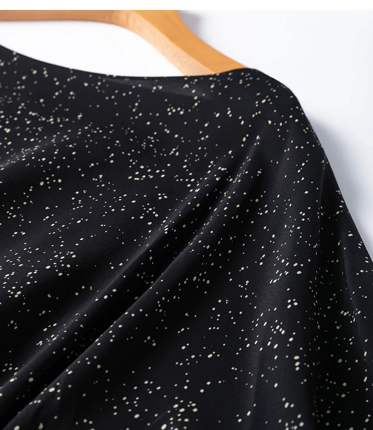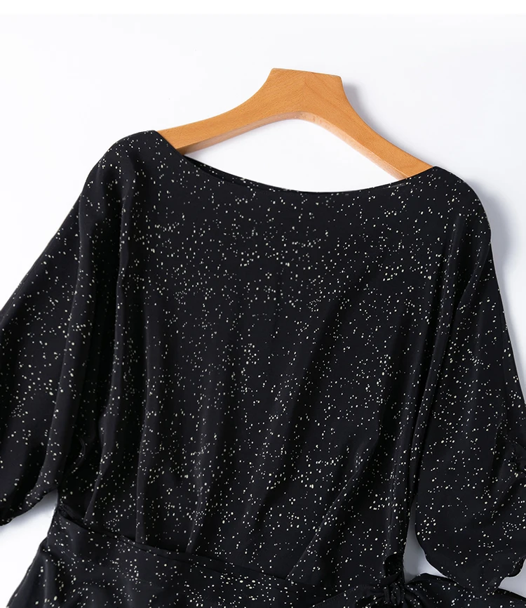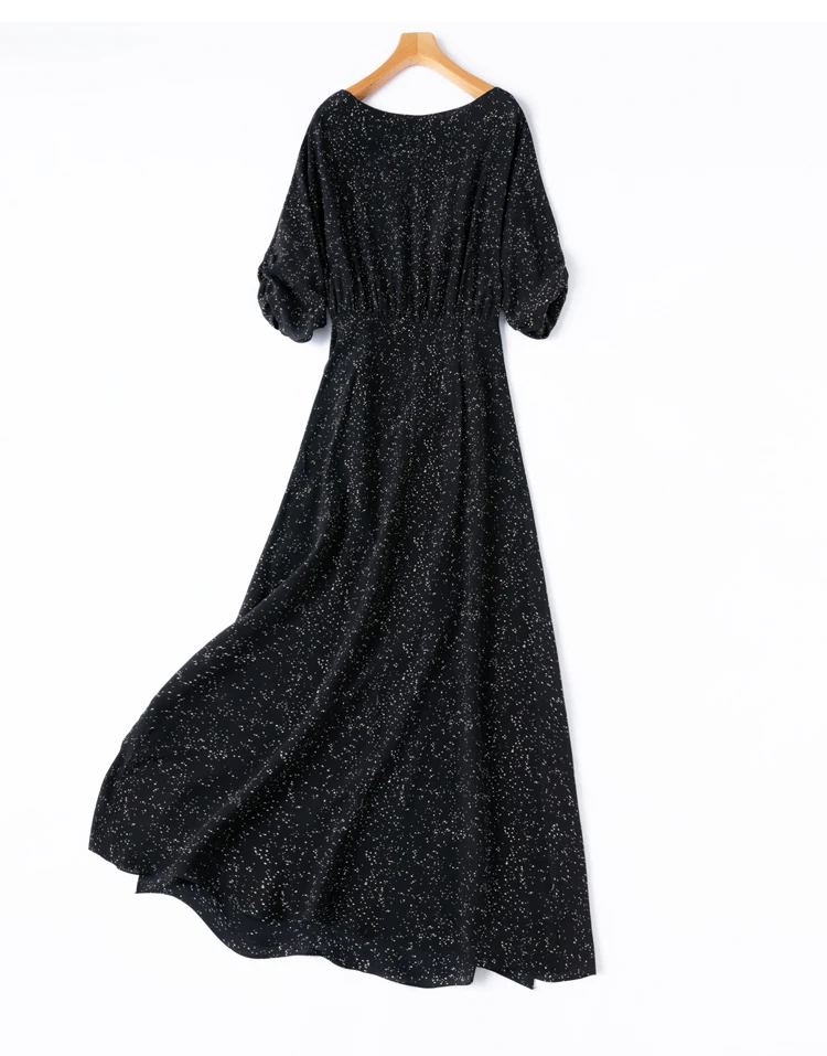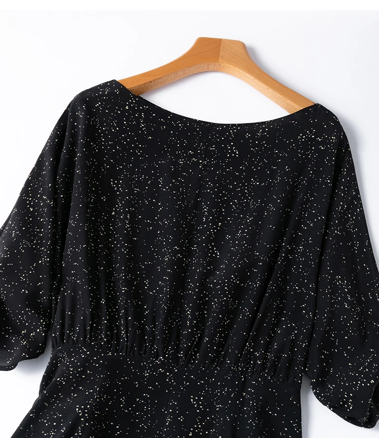 Women Midi Dress 100% Mulberry Silk Crepe Silk Half Sleeve Boat Neck Black Dots