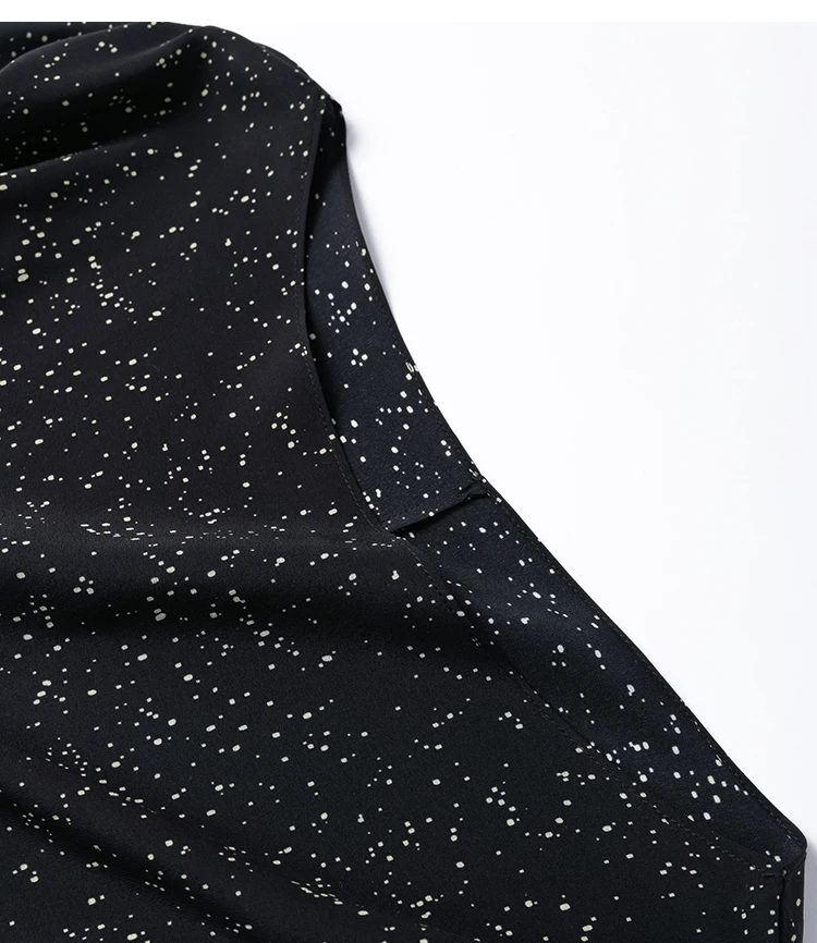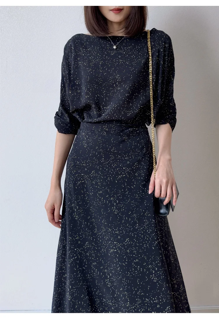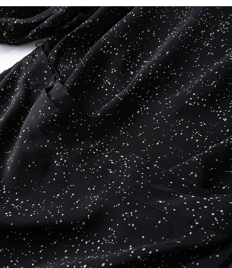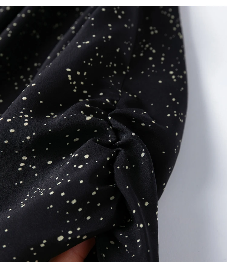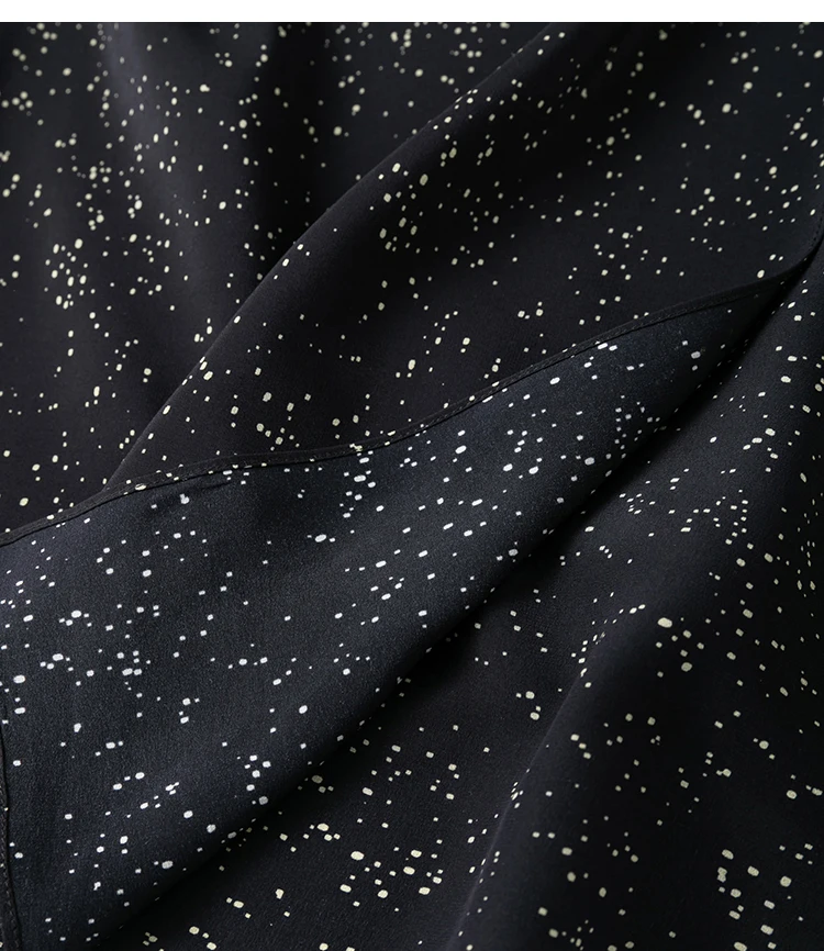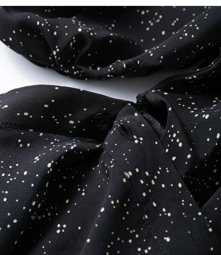Women Midi Dress 100% Mulberry Silk Crepe Silk Half Sleeve Boat Neck Black Dots