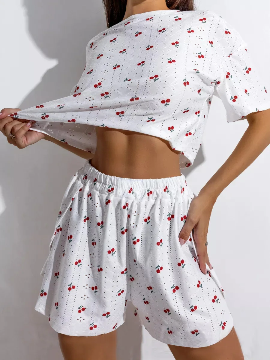 Women's Nightwear Set: Lace-Up, Breathable, Printed, Sensual Split-Hem Shorts an