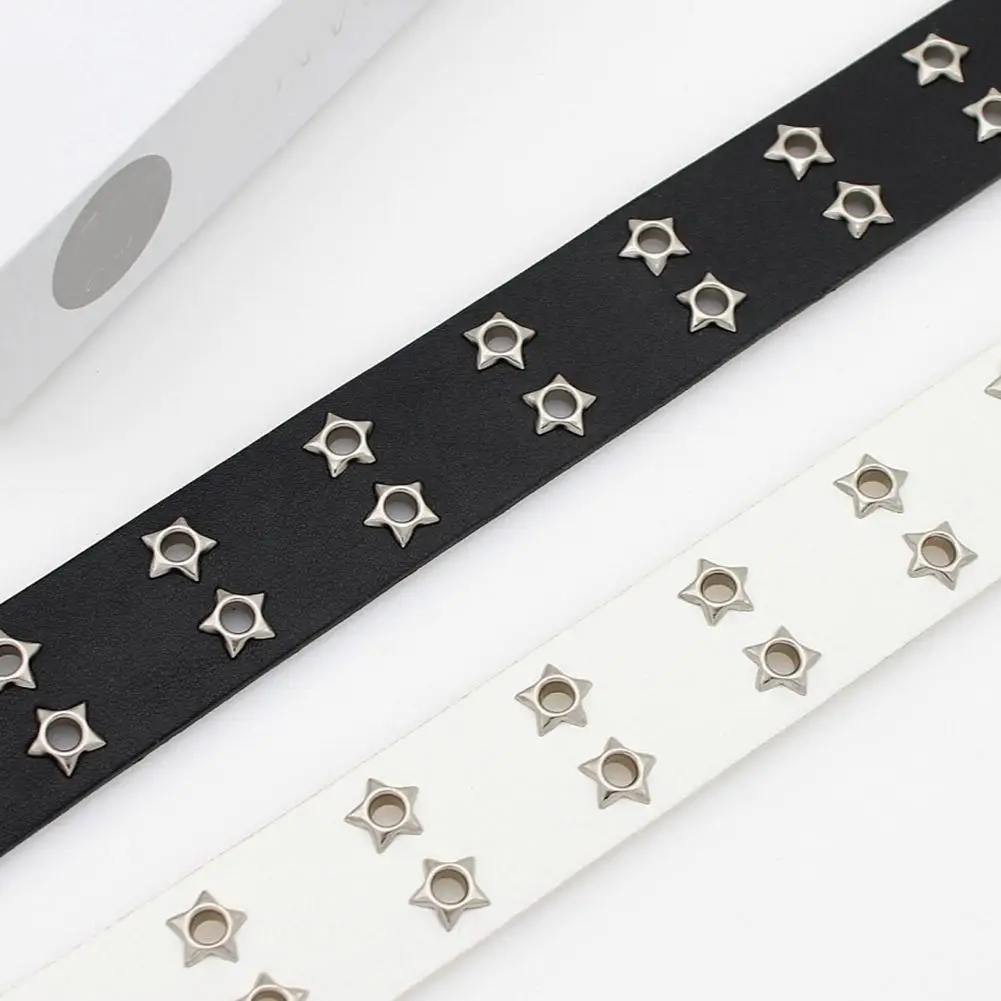Y2K Punk Rivet Leather Belts Star PU Black White Waist Strap Double Row Hollow